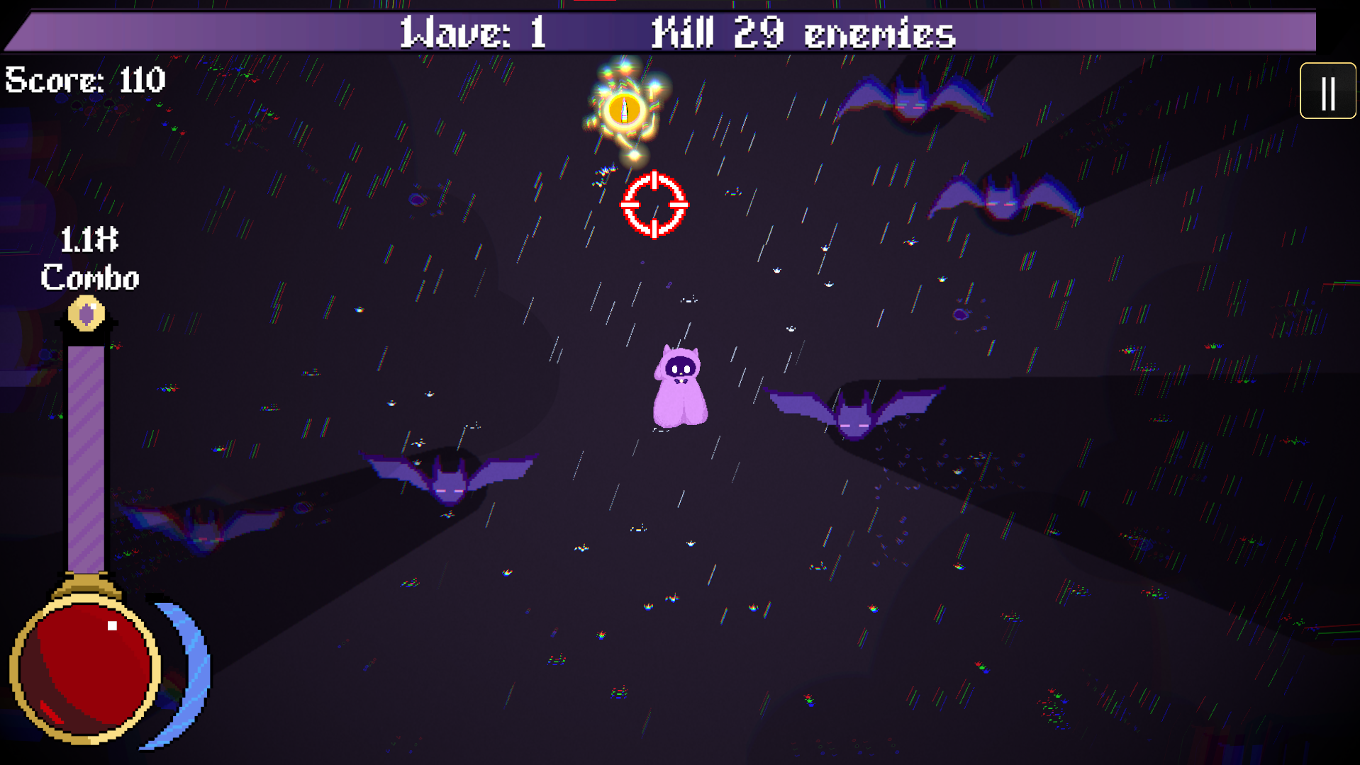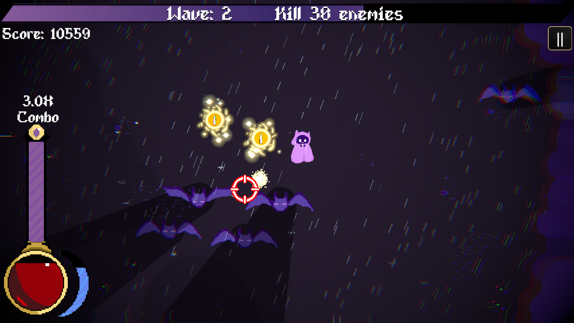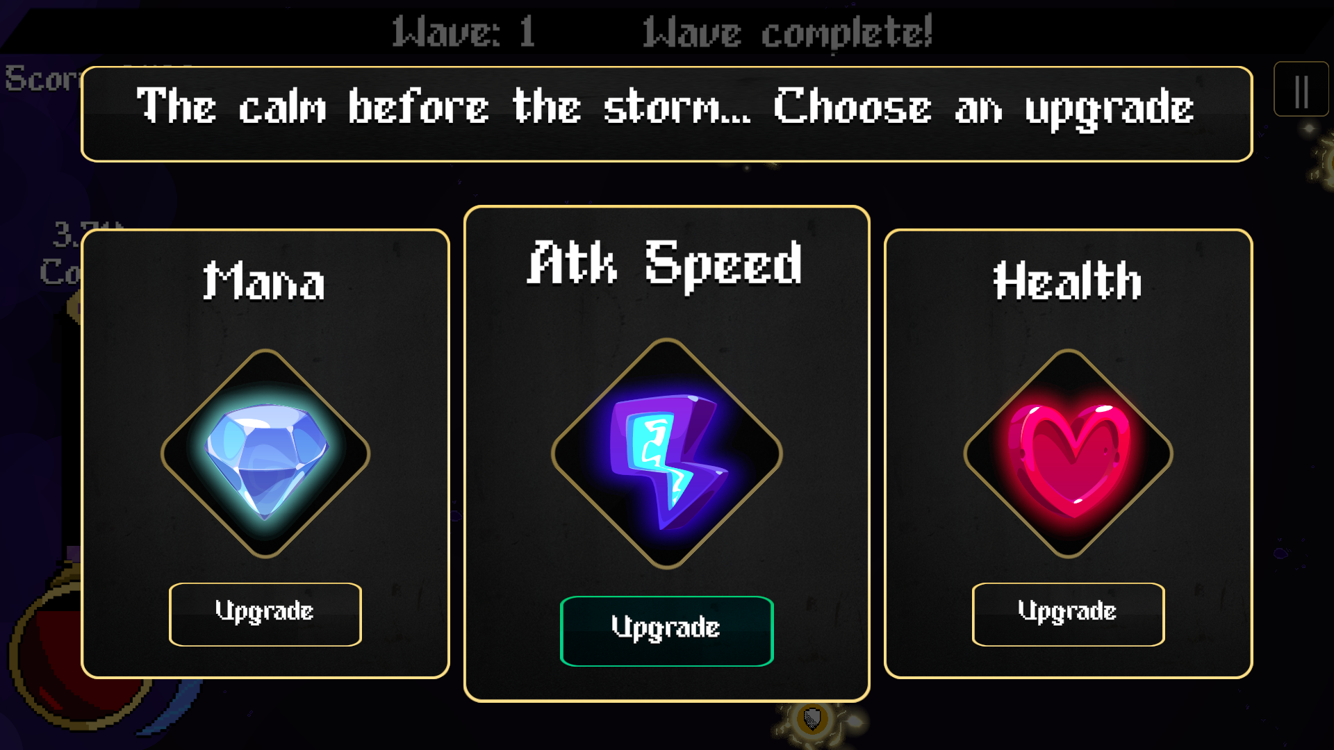 Play as a mage and survive against the storm in this top-down shooter inspired by Vampire Survivors.